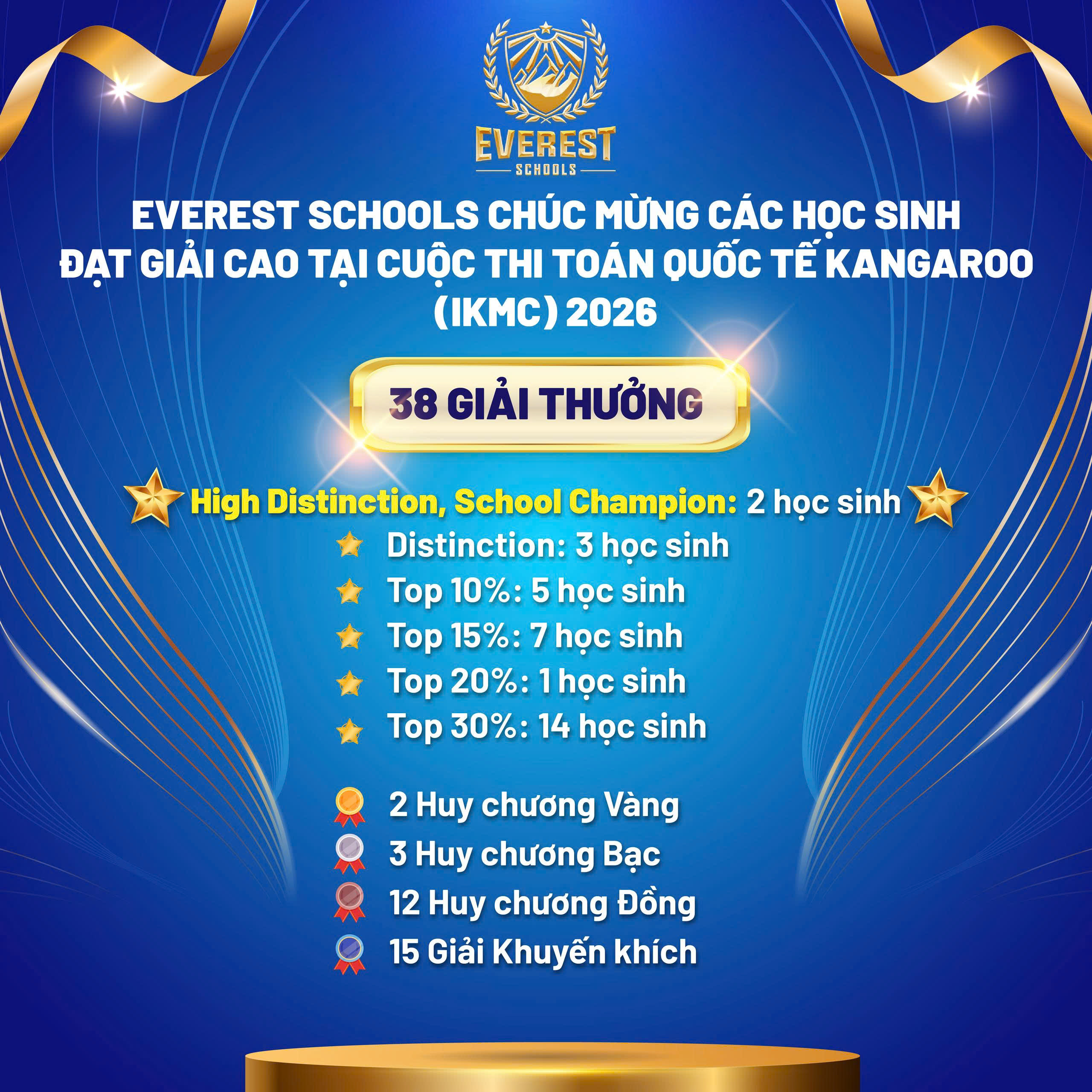 Everest Schools xin chúc mừng các em học sinh đã đạt thành tích xuất sắc, chúc các em tiếp tục nuôi dưỡng đam mê, phát huy năng lực và chinh phục thêm nhiều dấu mốc ấn tượng trên hành trình học tập phía trước!