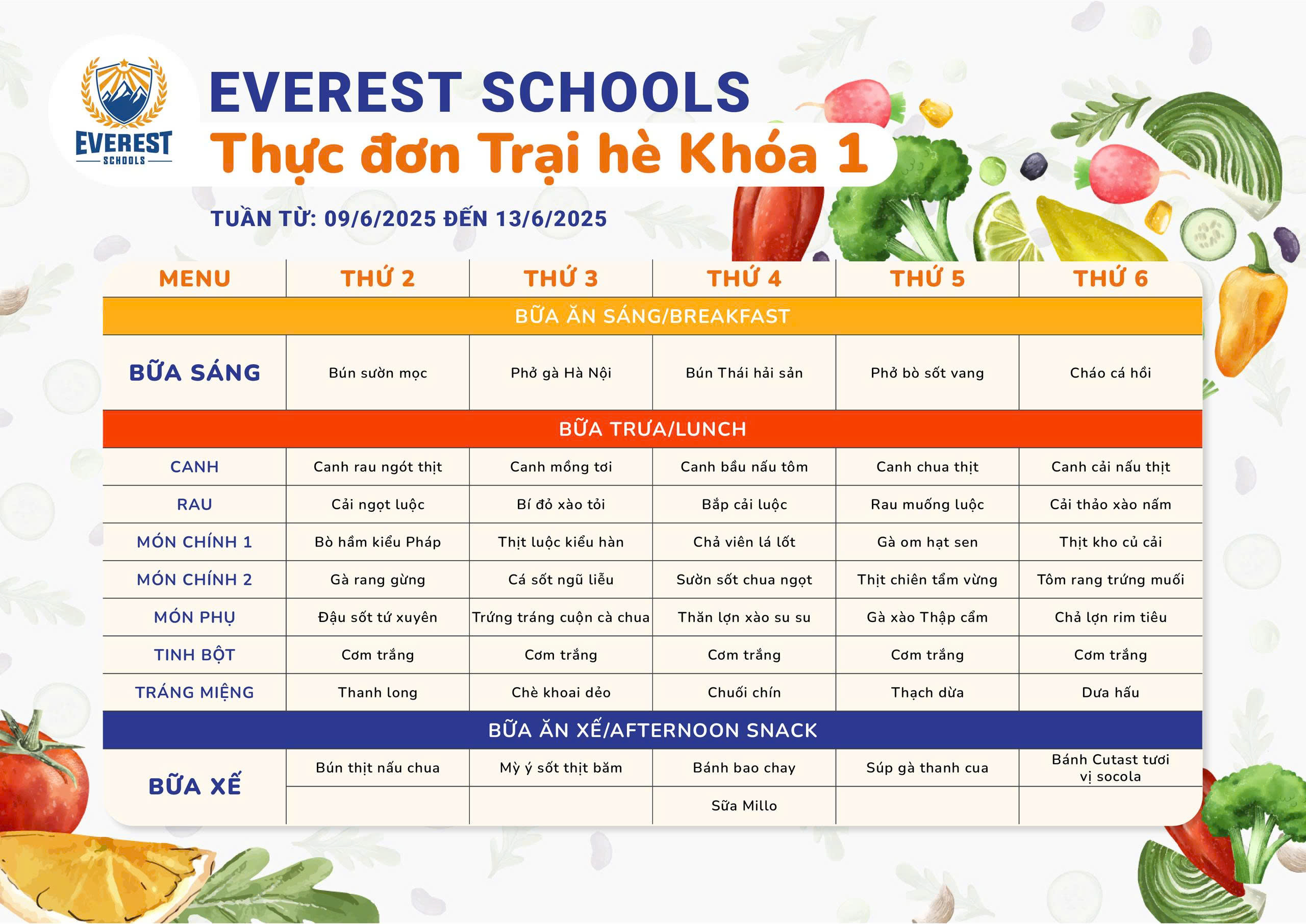 Thực đơn bữa ăn tuần 9/6/2025 - 13/6/2025
