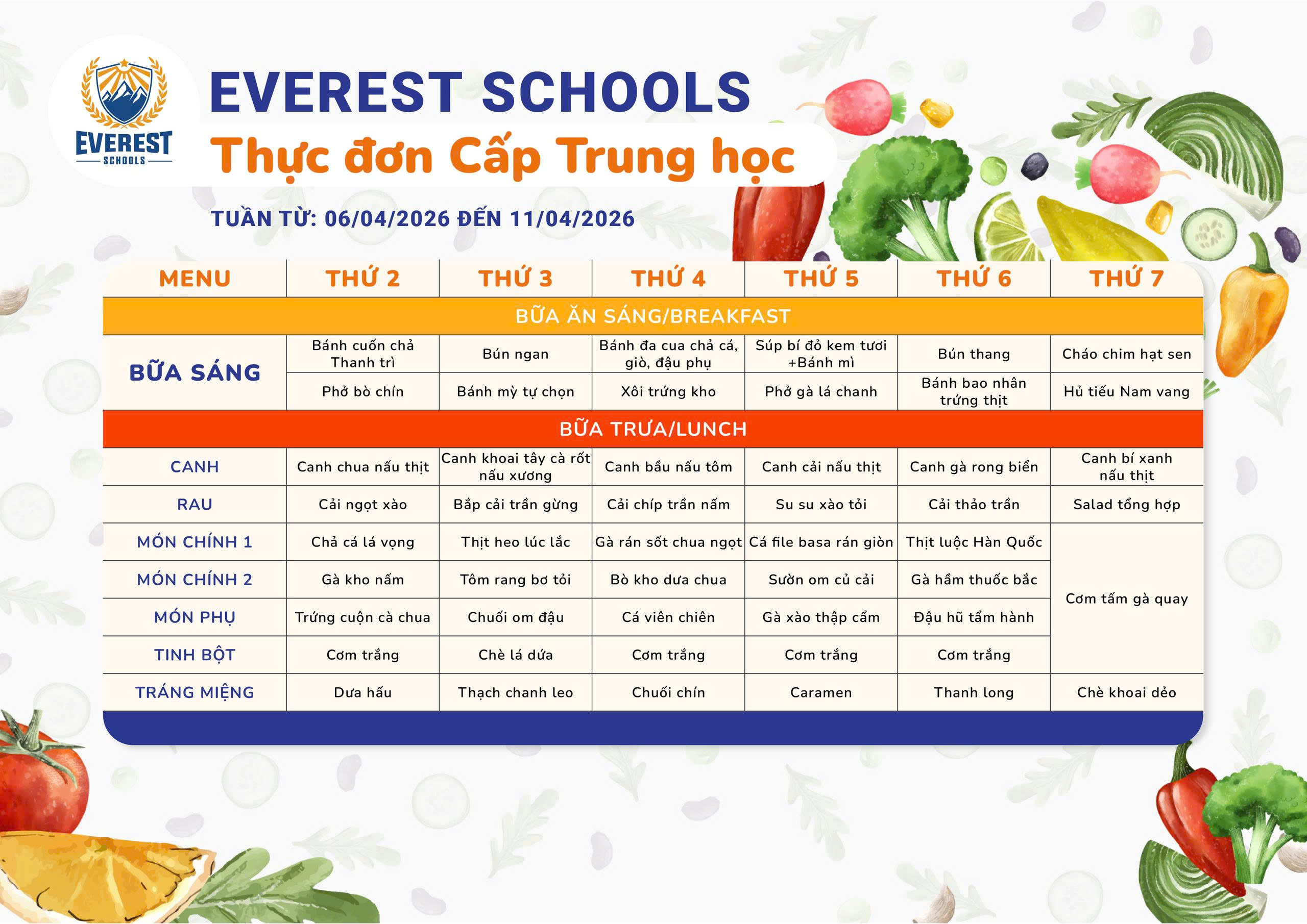 Thực đơn bữa ăn tuần 6/4/2026 - 11/4/2026