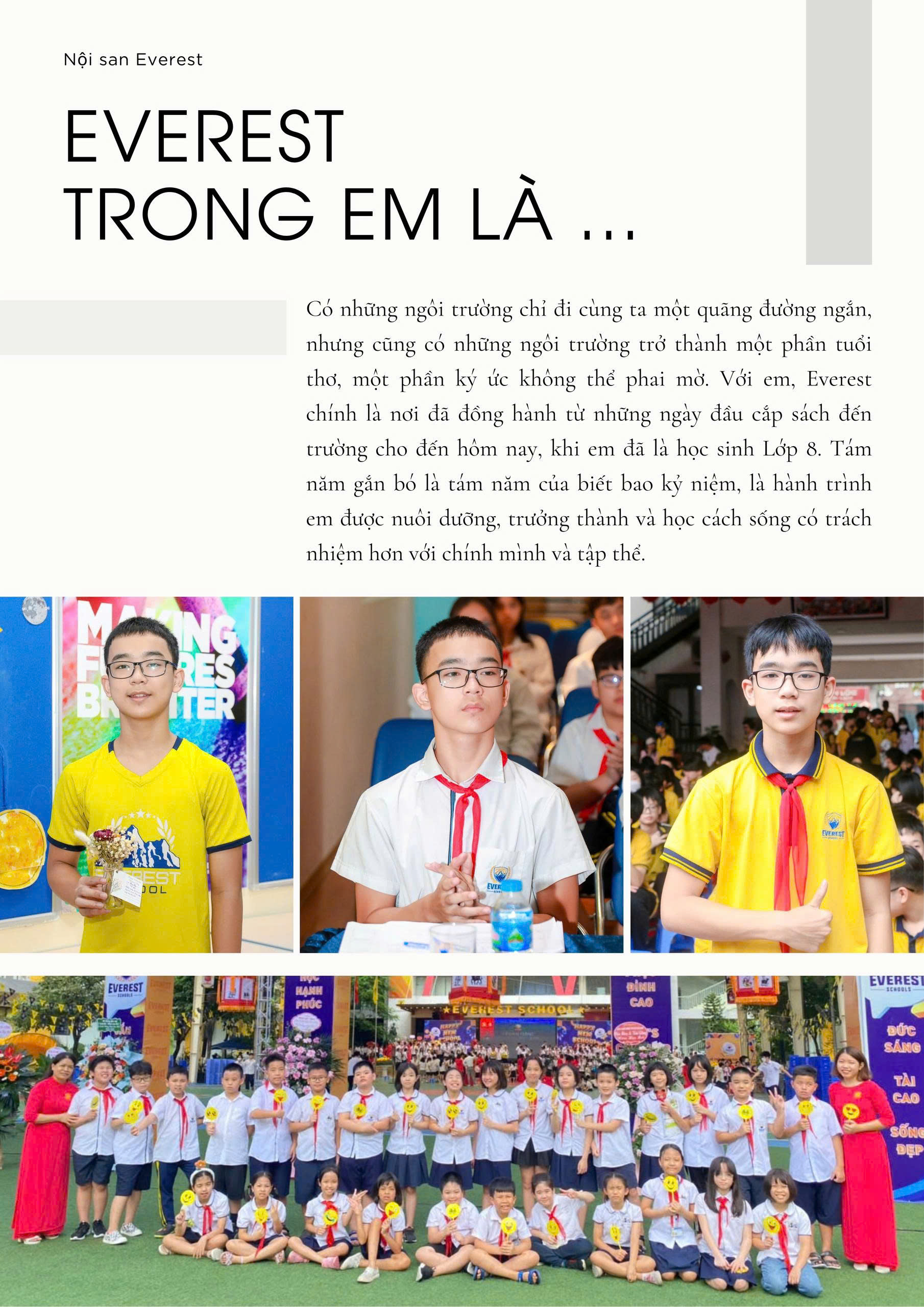 8 năm gắn bó với Everest, với em không chỉ là quãng thời gian đến lớp mỗi ngày. Đó là cả tuổi thơ, là cả một phần ký ức mà chắc chắn sau này em sẽ nhớ mãi.