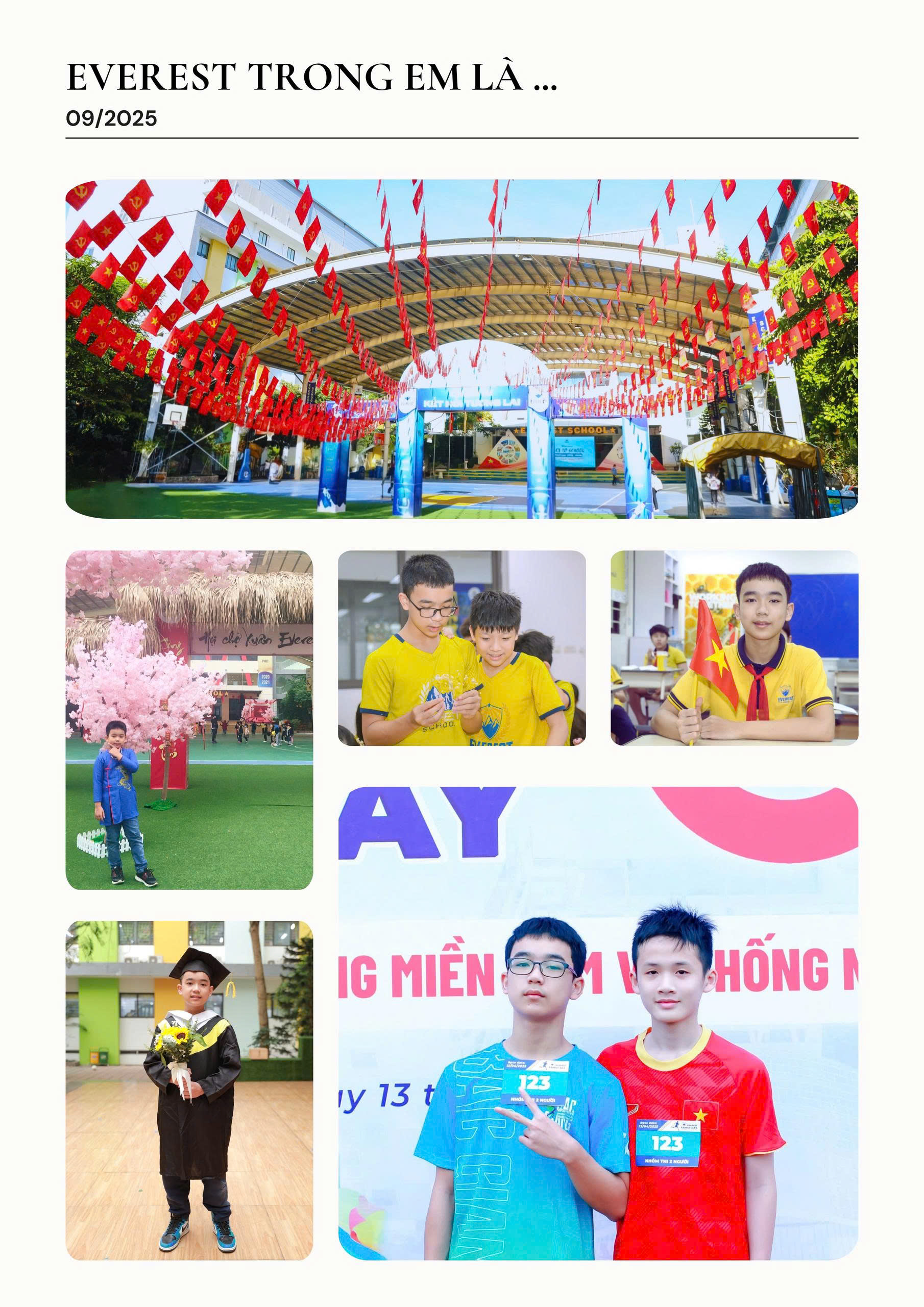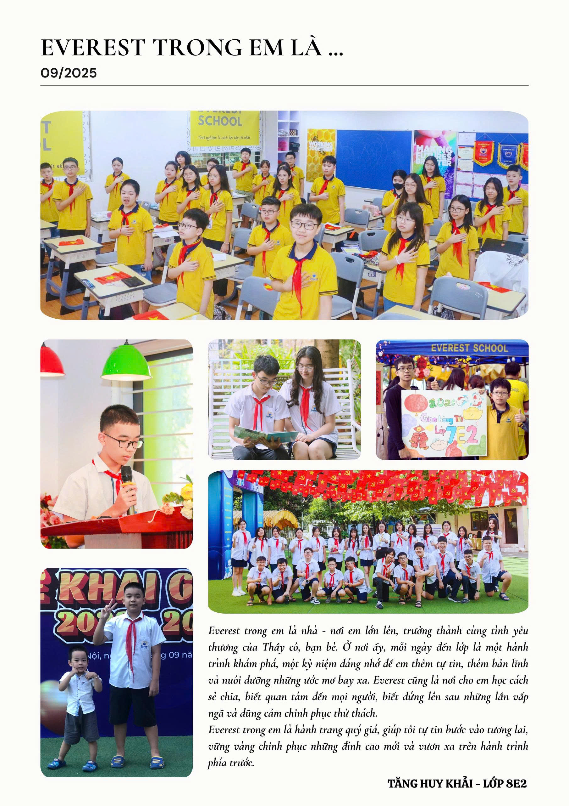Bước vào năm học mới, em nhìn thấy sân trường đông vui hơn, số lượng học sinh tăng lên rất nhiều so với những ngày đầu em học ở đây. Điều đó khiến em thật sự tự hào khi được là một phần trong hành trình trưởng thành và phát triển của Everest.