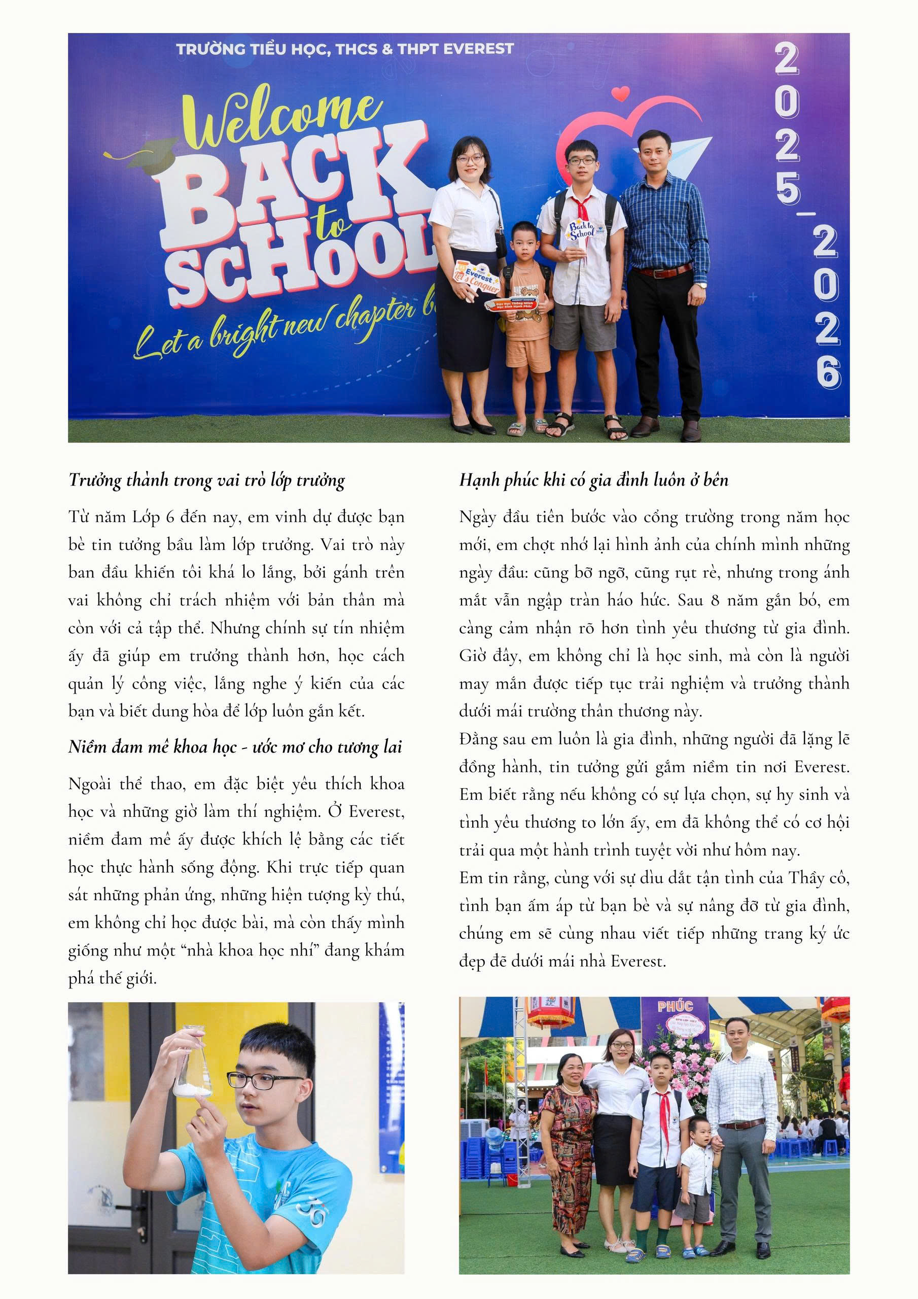 Đối với em, Everest chính là hành trang quý giá để em bước vào tương lai. Em tin rằng những gì mình học được ở đây sẽ giúp em vững vàng hơn, sẵn sàng chinh phục những “đỉnh Everest” mới ở phía trước.