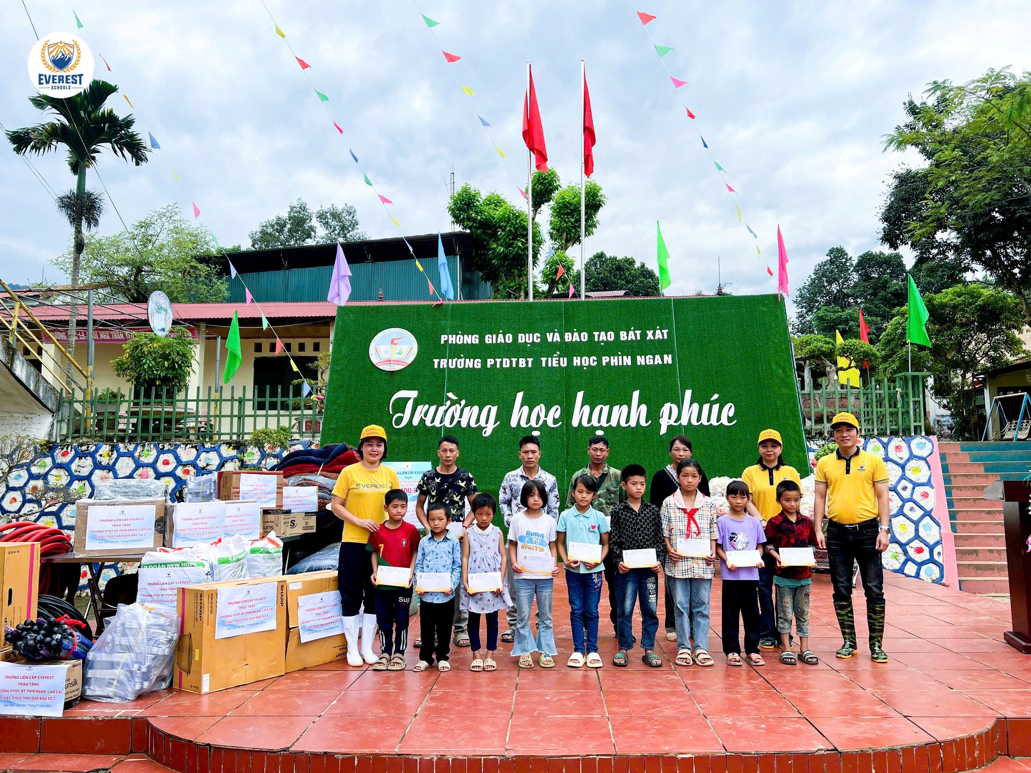 Ngày 22/9, Đoàn thiện nguyện Everest đã trực tiếp đến thăm và trao quà tại 5 điểm Trường Tiểu học Dân tộc Bán trú Phìn Ngan (huyện Bát Xát, tỉnh Lào Cai) - một trong những khu vực bị thiệt hại nghiêm trọng sau bão. Con đường vào trường vẫn còn nhiều đoạn sạt lở, việc đi lại khó khăn, cơ sở vật chất bị hư hại khiến Thầy cô và học sinh nơi đây gặp không ít trở ngại trong việc ổn định giảng dạy và sinh hoạt.